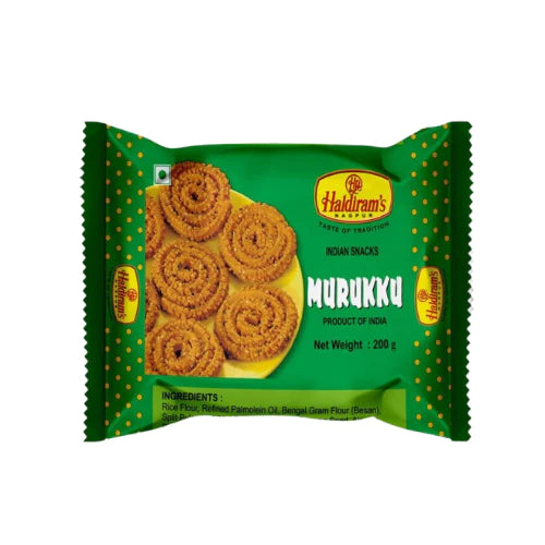 Haldiram's Murukku is a crispy and irresistible Indian snack that's perfect for munching anytime, anywhere. Crafted with the finest ingredients and expertly spiced, these spiral-shaped treats offer a burst of flavour in every bite. The classic blend of lentil flour, rice flour, and a secret mix of spices creates a unique and savoury taste experience. Whether you're enjoying it as a tea-time snack or serving it to guests, Haldiram's Murukku is a delightful choice that captures the essence of traditional Indian snacking. Crunch into the goodness and savour the rich, aromatic flavours that make this snack a favourite among snack enthusiasts.